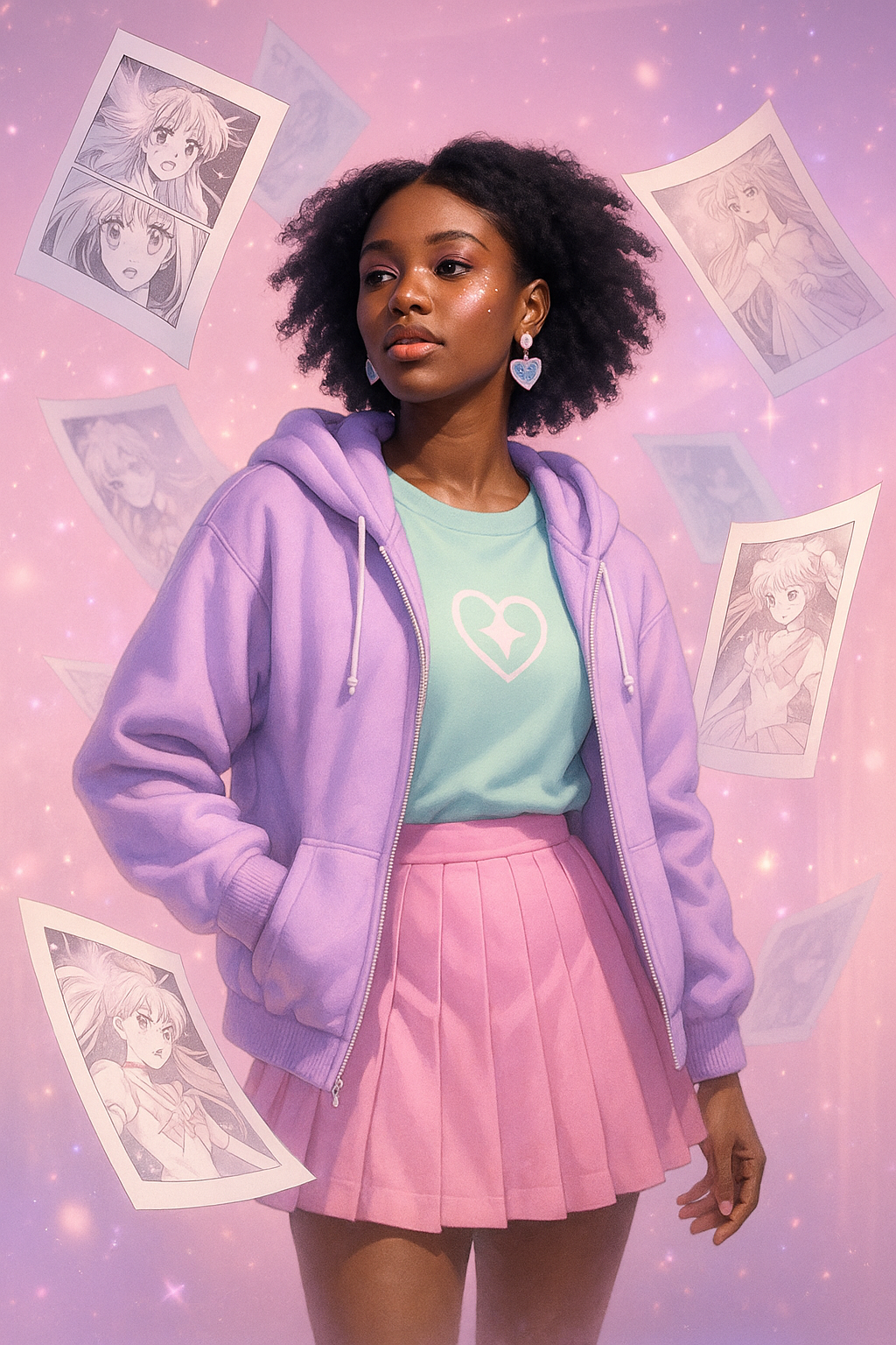 Shojo-inspired streetwear that celebrates Black creativity, softness, and power — designed by Miori Ananse.
